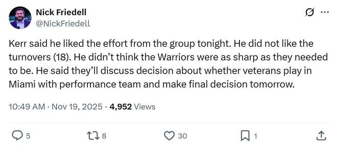 相比于輸?shù)粢粓鰪姀妼υ?,在庫里轟下34分迎來里程碑,巴特勒也有30+得分入賬的情況下依舊輸球更加值得關(guān)注,也讓科爾此前公開點評勇士的這一番話含金量進一步提升。