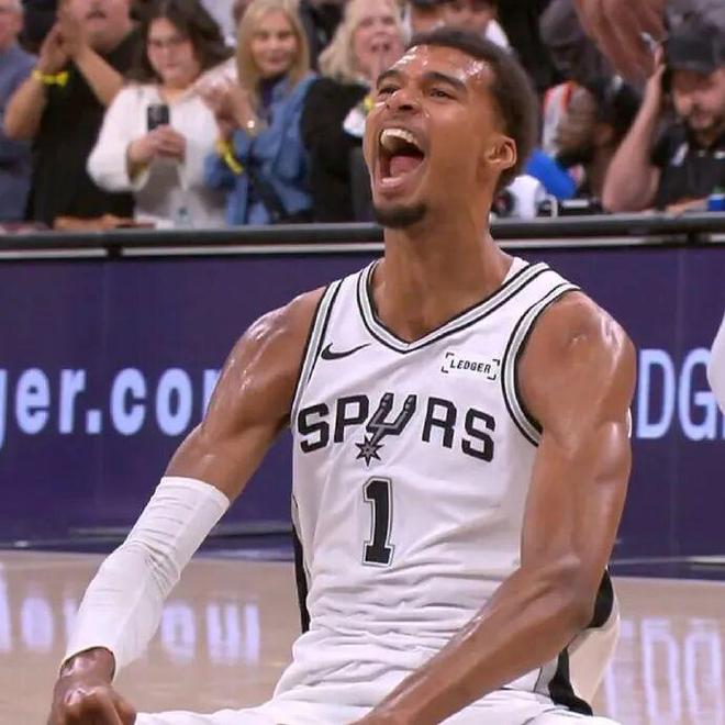 賽后,文班亞馬和隊(duì)友一一擁抱示意,隨后振臂怒吼仰天大嘯